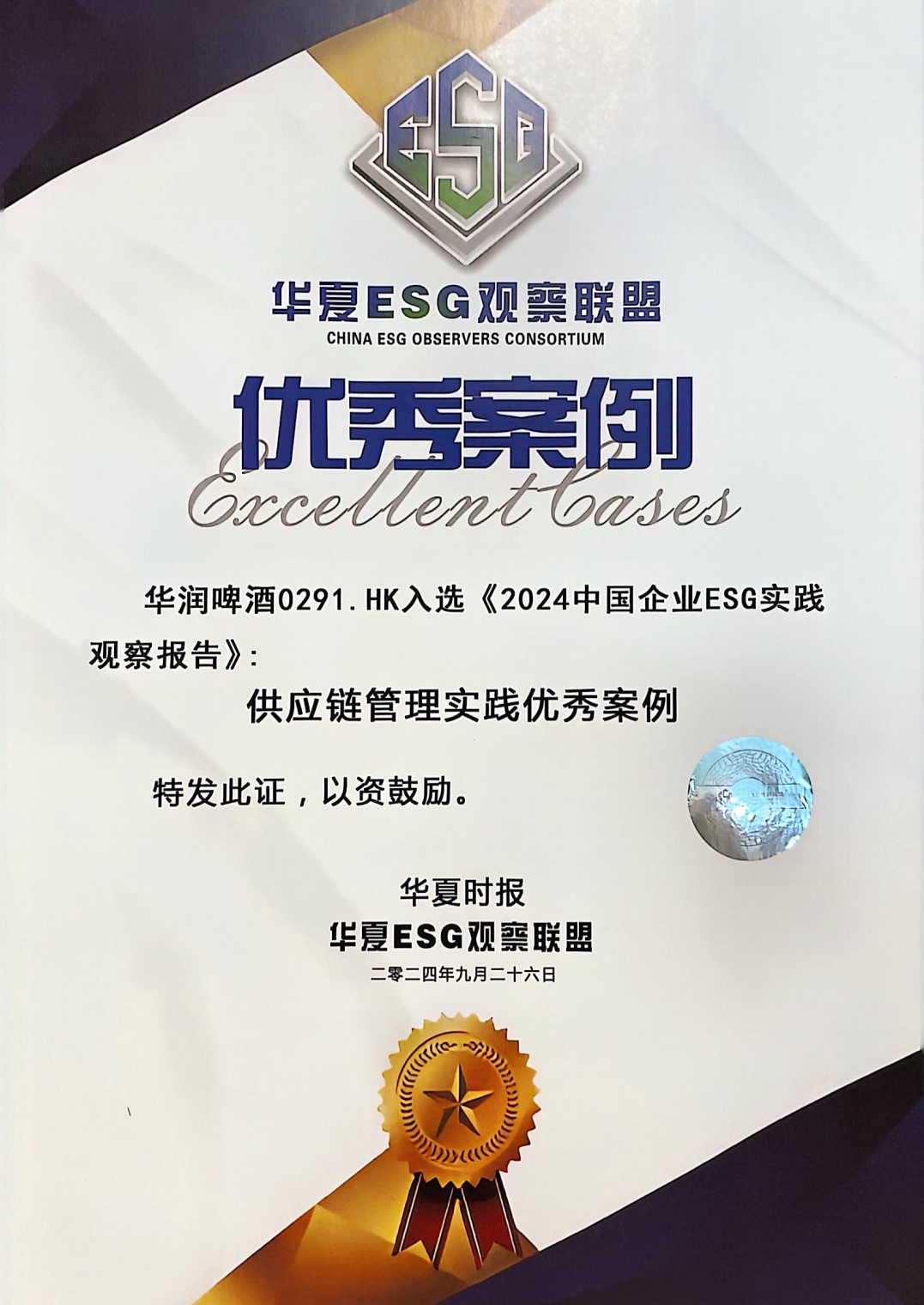 在可持续发展成为全球共识的今天,企业在环境保护、社会责任和公司治理(ESG)方面取得的成就,是衡量其综合实力和长期价值的重要标准。近日,华润啤酒凭借在ESG相关领域的卓越表现,相继荣获两大重要奖项——由中国酒业协会颁发的“2023中国酒业ESG示范企业”以及由华夏时报——华夏ESG观察联盟颁发的“供应链管理实践优秀案例”,充分说明了华润啤酒在绿色、低碳、高质量发展方面的坚定决心,以实际成果为行业树立了新的标杆。