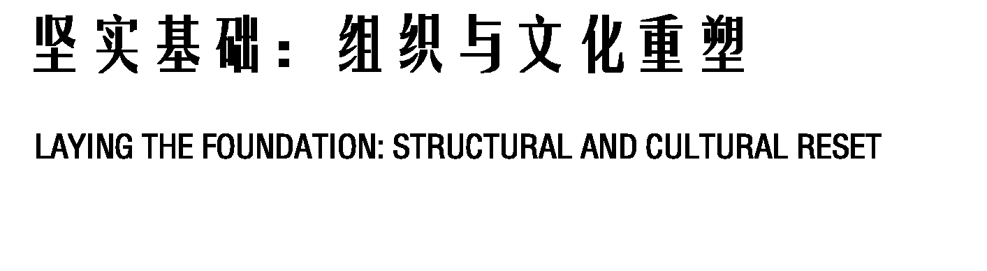 在追求进一步的增长之前,华润啤酒认识到首先要从根本上解决效率低的问题并开展企业文化重塑的必要性。重塑强势品牌首先需要通过能力优化和组织重塑建立坚实的基础。