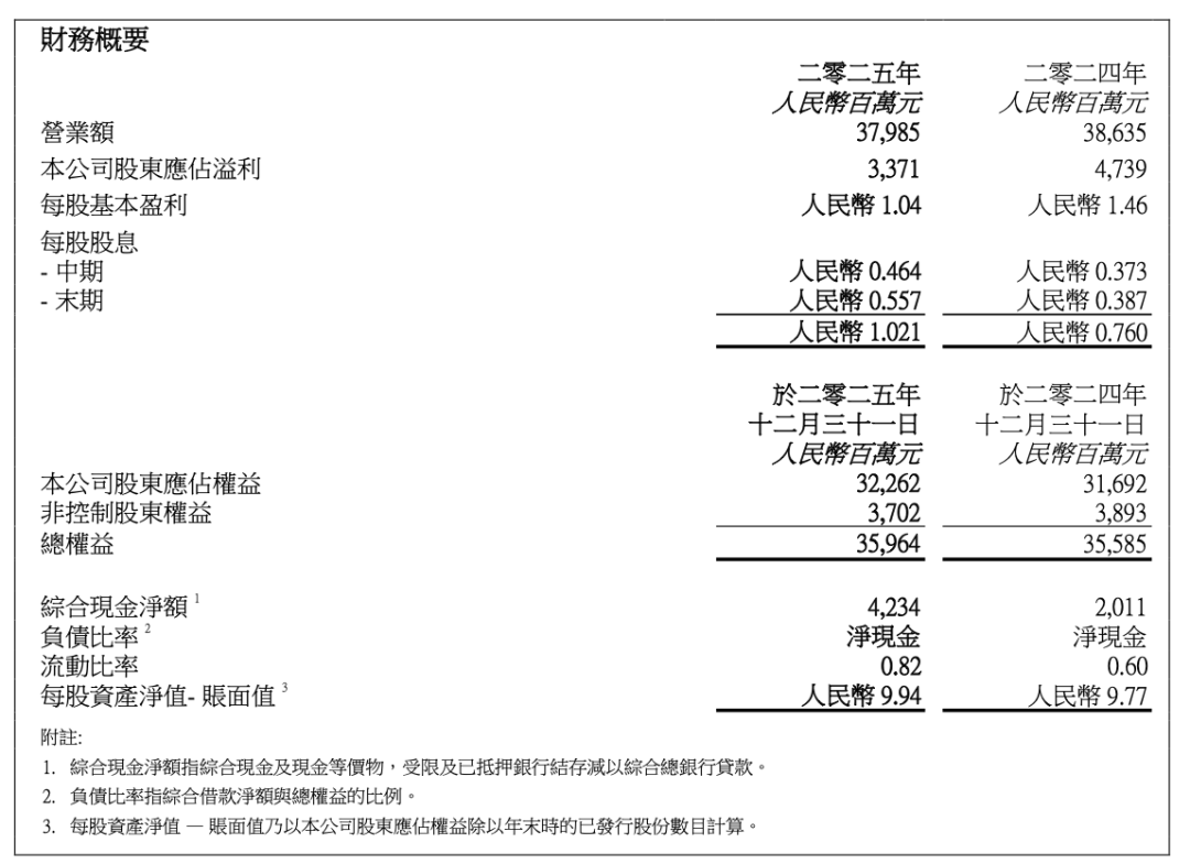 2025年关停4间啤酒厂,新投产1间深圳智慧精酿工厂,年底运营59间工厂,年产能约1910万千升。经营活动现金流入净额71.27亿元,同比提升2.9%。