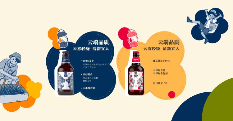 盛夏覆盆子风味果啤,产品添加进口覆盆子汁,不添加香精、着色剂,采用艾尔上发酵工艺,带来酸甜暴浆风味的轻雾口感,搭配丝绒质地的深红宝石色酒体,赋予盛夏艳阳果香。