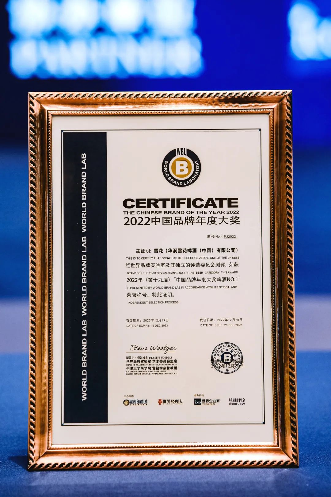 雪花啤酒再度蝉联“中国品牌年度大奖”啤酒行业(NO.1),雪花啤酒旗下主打白啤果啤的个性化品牌“黑狮”则荣获中国品牌年度特别大奖-品牌营销大奖。