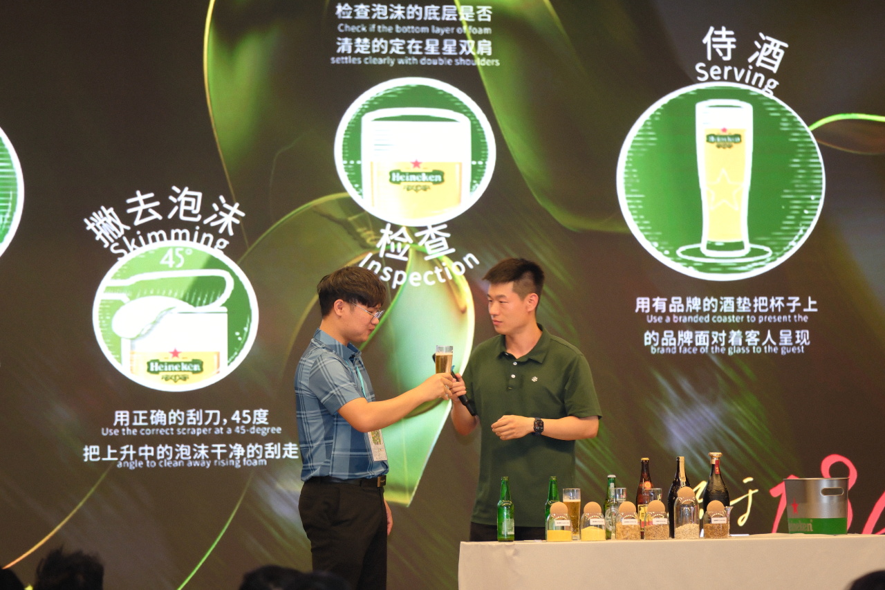 在品鉴环节,李志豪带来了喜力星银、老雪、醴与醲醴四款产品,让各国商务官员在现场浓浓的啤酒文化氛围之中,共品共鉴华润啤酒深厚的酿造底蕴与产品布局上“中国品牌+国际品牌”的创新巧思,感受啤酒跨越千年的酿造智慧与传承。