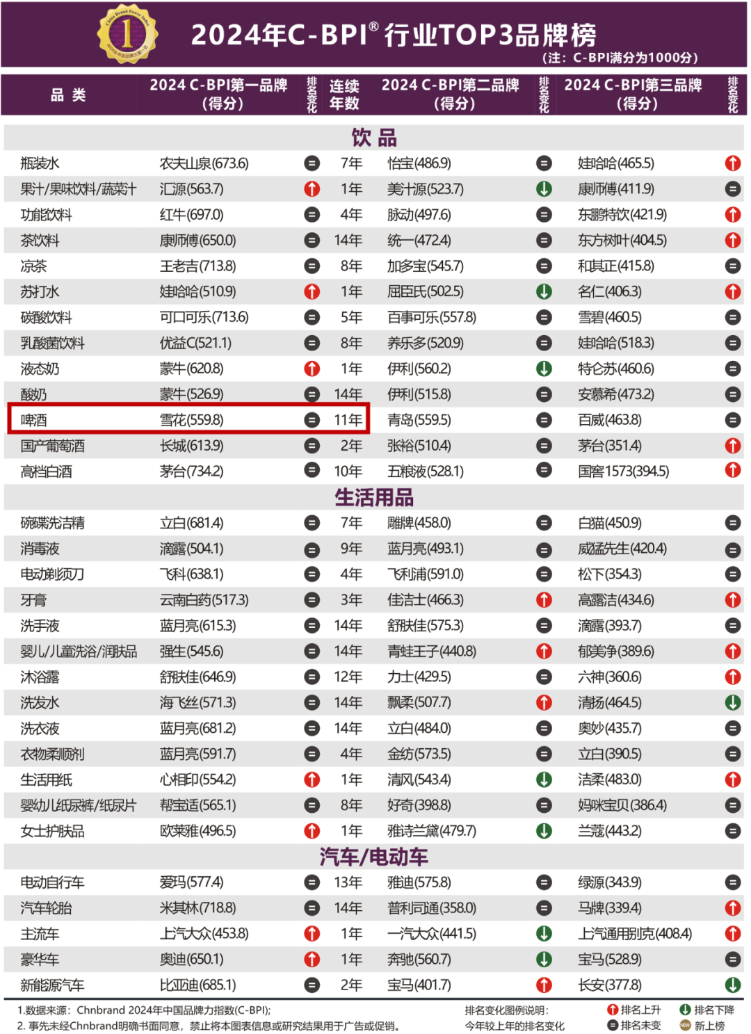 2024年5月10日,中国北京–品牌评级权威机构Chnbrand发布2024年(第十四届)中国品牌力指数SM(C-BPI®)品牌排名和分析报告。该指数2011年首次推出,是中国首个且最具公信力的品牌价值评价制度。
