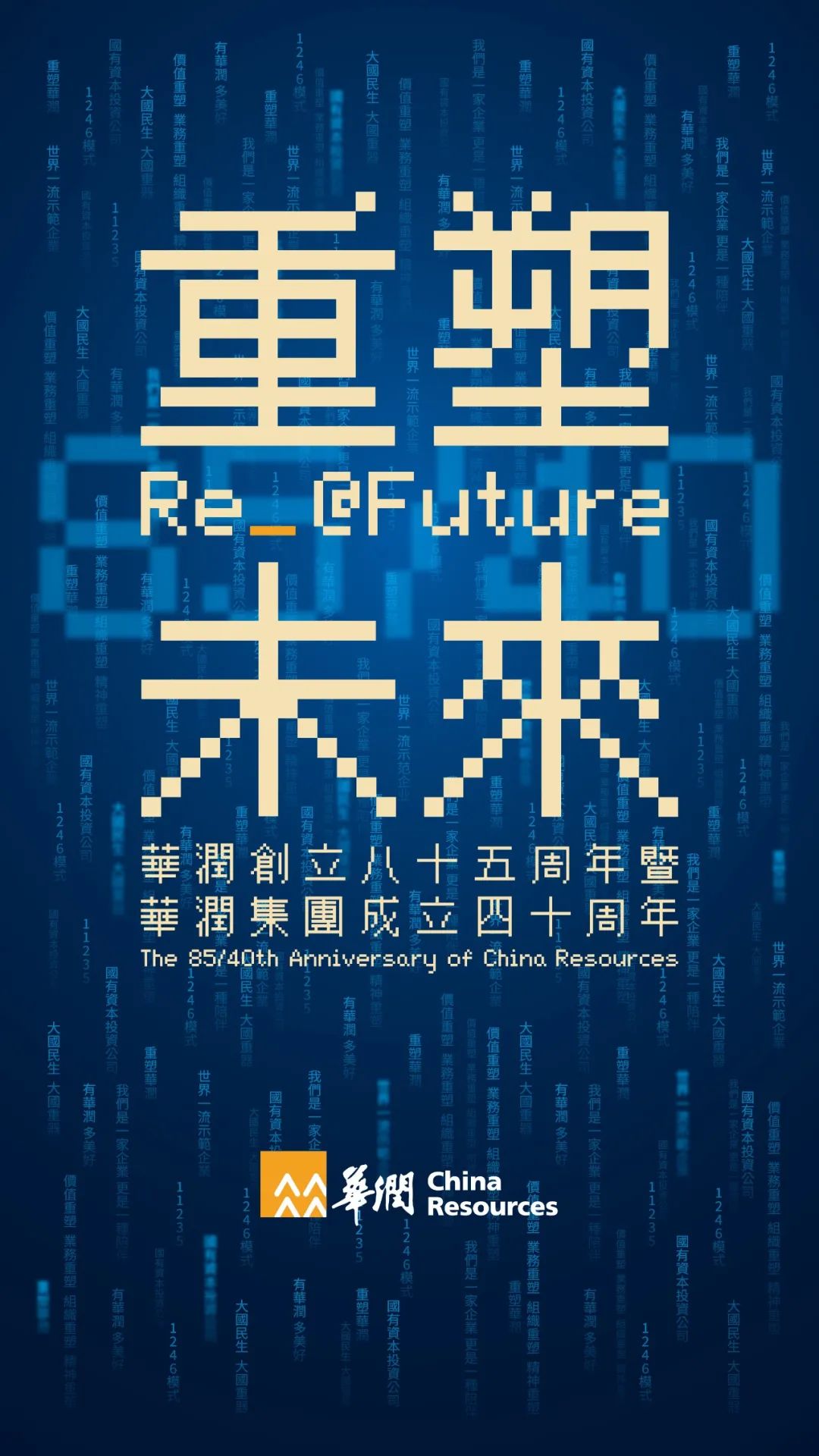 “Re__@future”,“Re”呼应着“价值重塑、业务重塑、组织重塑、精神重塑”四大重塑的内容,闪动的光标“__”寓意着不设限,接力棒已在今天的每一位华润人手上,未来的每一种可能,由当下创造。