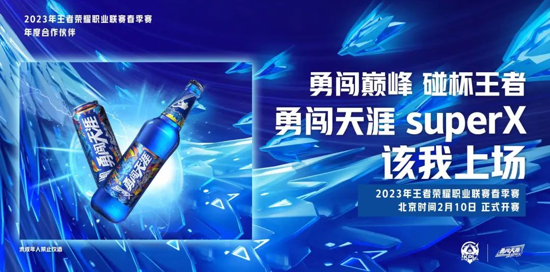 在勇闯天涯superX与KPL的携手下,“勇闯巅峰,碰杯王者”已正式启航。一方面,是二次元的游戏精神在玩家生活场景中的渗透,另一方面,是三次元的冒险精神在游戏场景中的无限可能。经济的复苏将带来竞技的新形态,在充满机遇与挑战的2023年,勇闯天涯superX携手KPL打造以「碰杯王者,勇闯巅峰」为主题的年度合作,不仅将跨次元构筑玩家生态,也将探索电竞基因融入传统品牌新航道,以玩家生活场景驱动发展电竞赛事生态IP,共驱破局之路,竞击未来。