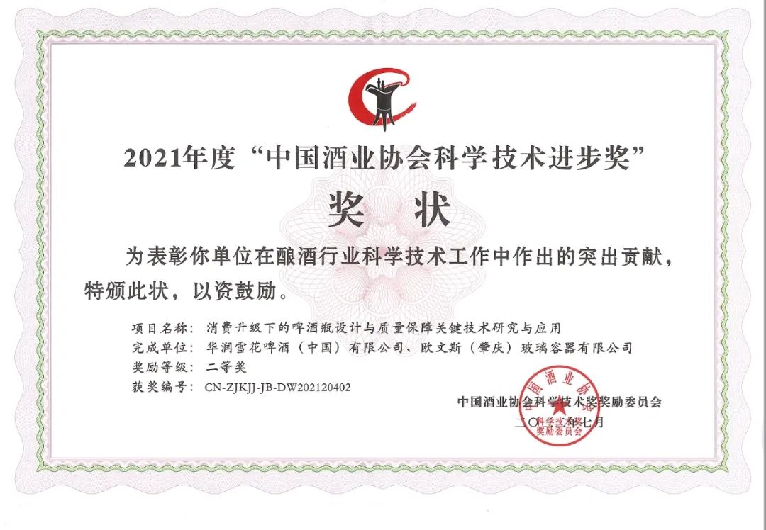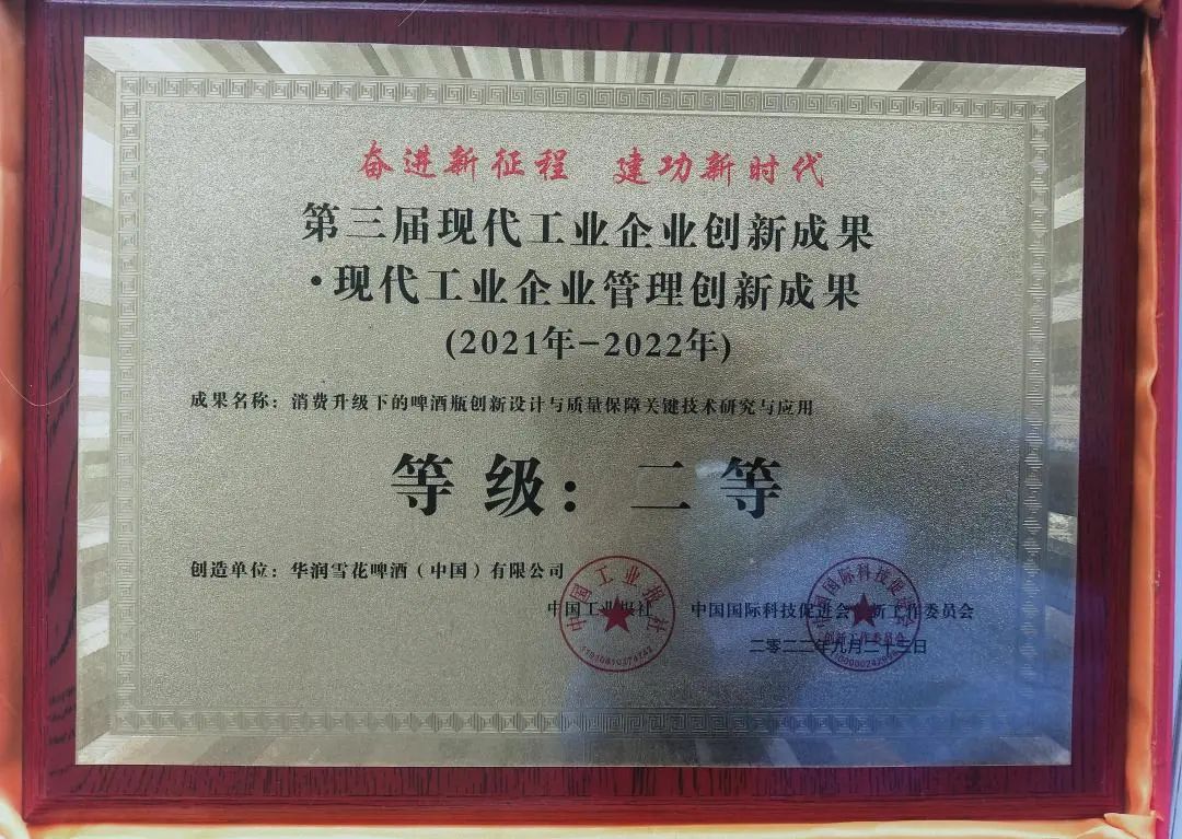 ◉ 荣获2021年度中国酒业协会 “科学技术进步奖”二等奖;《消费升级下的啤酒瓶创新设计与质量保障关键技术研究与应用》项目荣获第三届现代工业企业创新成果•现代工业企业管理创新成果二等奖;38名雪花员工荣获国家级啤酒品酒委员“国嘴”称号。