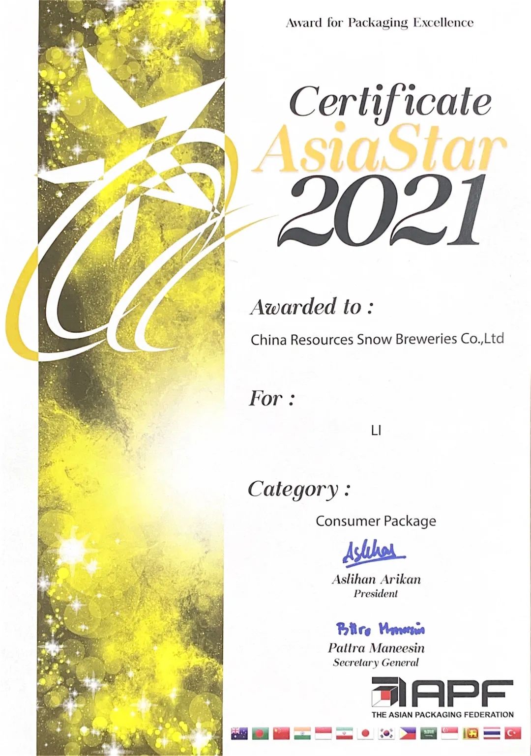 ◉ “雪花脸谱(花脸)”荣获澳大利亚国际啤酒大奖赛美式拉格组银奖,捷克皮尔森组一星天禄奖;“花脸啤酒(旦角)”荣获中国国际啤酒挑战赛四星天禄奖。