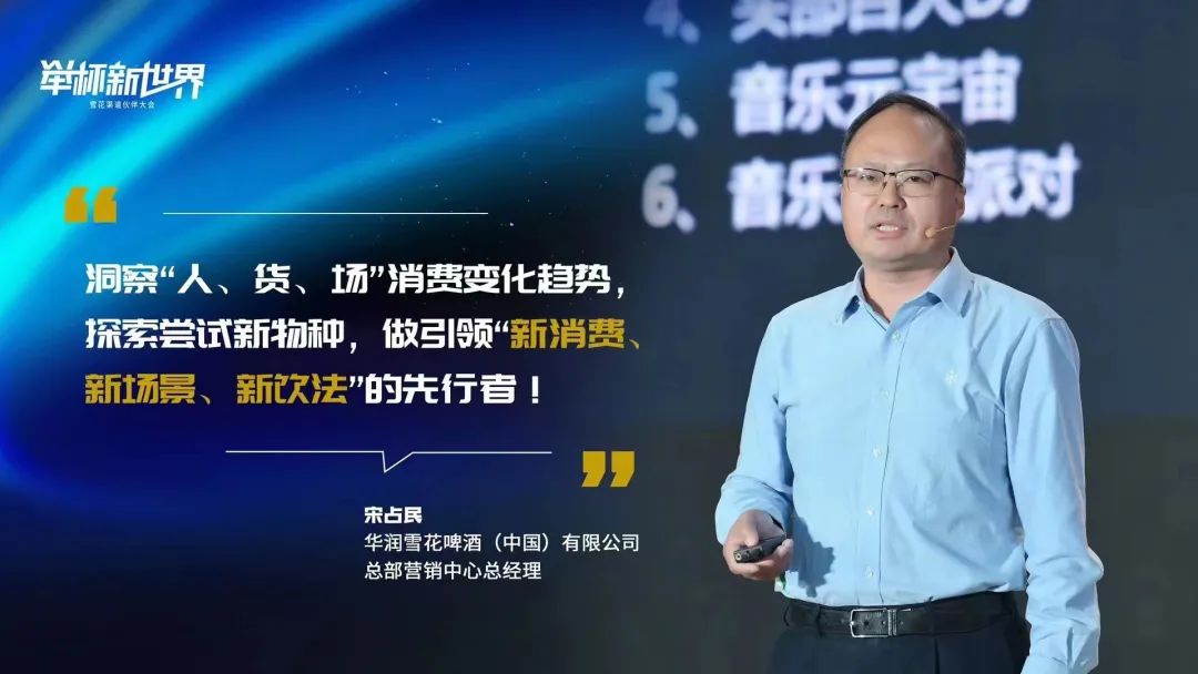 在消费升级、中产阶级快速成长及Z世代成为主力消费军的时代背景下,华润雪花啤酒从市场需求出发,持续打造消费者喜爱的营销活动,营造更多、更好的高端化啤酒消费场景。2023年,华润雪花啤酒将开启3+3+3战略的第三个三年。华润雪花啤酒营销中心总经理宋占民介绍了未来三年雪花啤酒的发展蓝图:啤酒在总量规模上要实现稳健增长;大高档能够快速发展,成为行业的领导者;创新品牌传播方式,精准渠道营销,提升品牌力;洞察“人、货、场”消费变化趋势,探索尝试新物种,做引领“新消费、新场景、新饮法”的先行者。