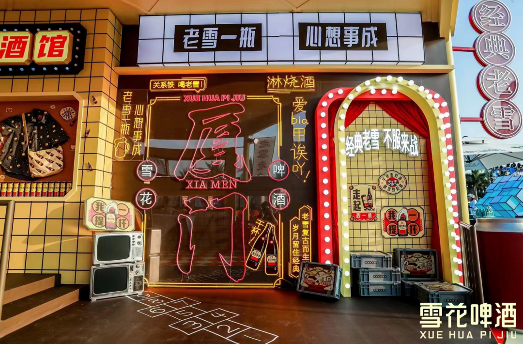 值得一提的是,本届华润雪花啤酒生态伙伴周设置了饮·JOY WONDERπ海滩玩派户外展区,雪花啤酒中国品牌与国际品牌纷纷亮相,嘉宾既可以在勇闯天涯superX的X能量站与黑狮白啤的自由营地中感受青春热情之美,也能在老雪打造的复古酒馆里重拾经典的回忆。与此同时,喜力®与高端足球赛事五座奖杯的强强联合、苏尔打造的梦幻阳光沙滩、红爵“搬来”的欧洲风情街巷等也各具特色,所有展区都与品牌气质相得益彰,呈现出多元啤酒品牌文化的无限魅力,诠释了新世界下啤酒创新发展的更多可能。