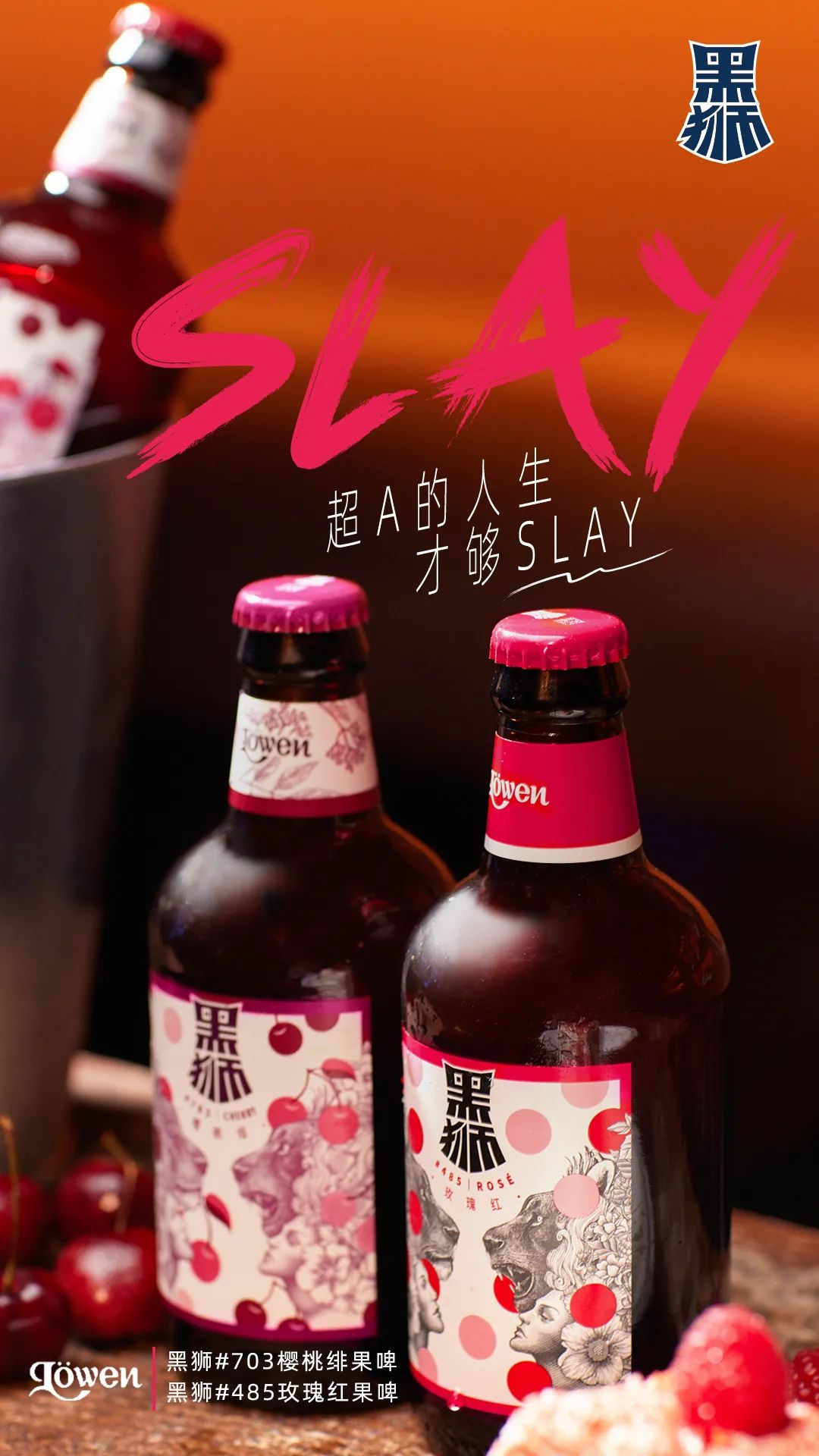 2022年3月8日,雪花啤酒黑狮LÖWEN系列新成员黑狮#703樱桃绯果啤正式上市。在枝桠开始爆出嫩芽的日子里,黑狮#703樱桃绯果啤延续“超A的人生才够SLAY”的主张,带来全新的春日大赏。