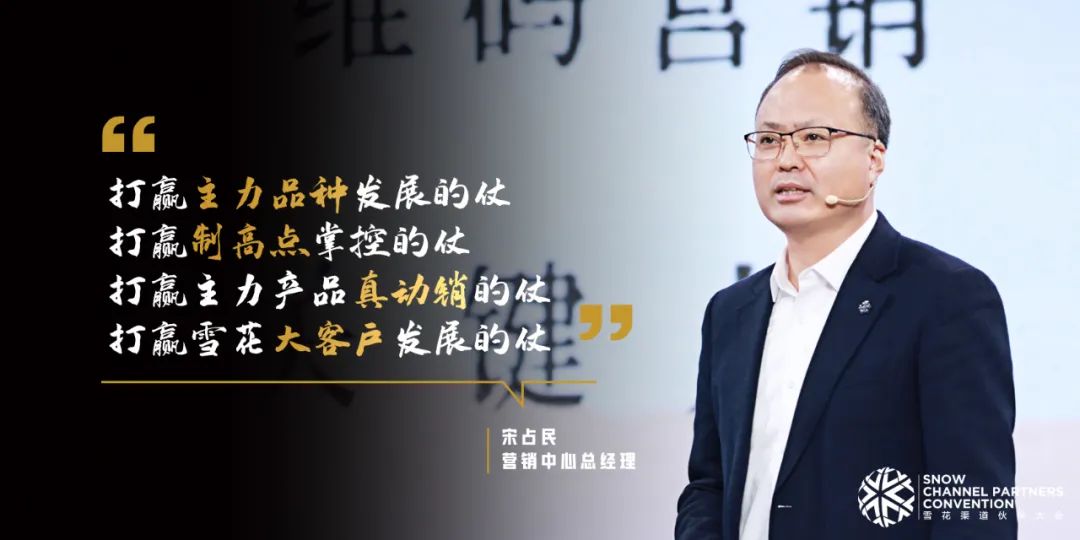 在演讲环节最后,营销中心总经理宋占民、渠道发展部总监王伟健介绍了自2020年雪花渠道伙伴大会首次开启之后,雪花在高端渠道运营、高端组织优化及对大客户赋能层面取得的成果,并分享了明年将要打的几场“大仗”。
