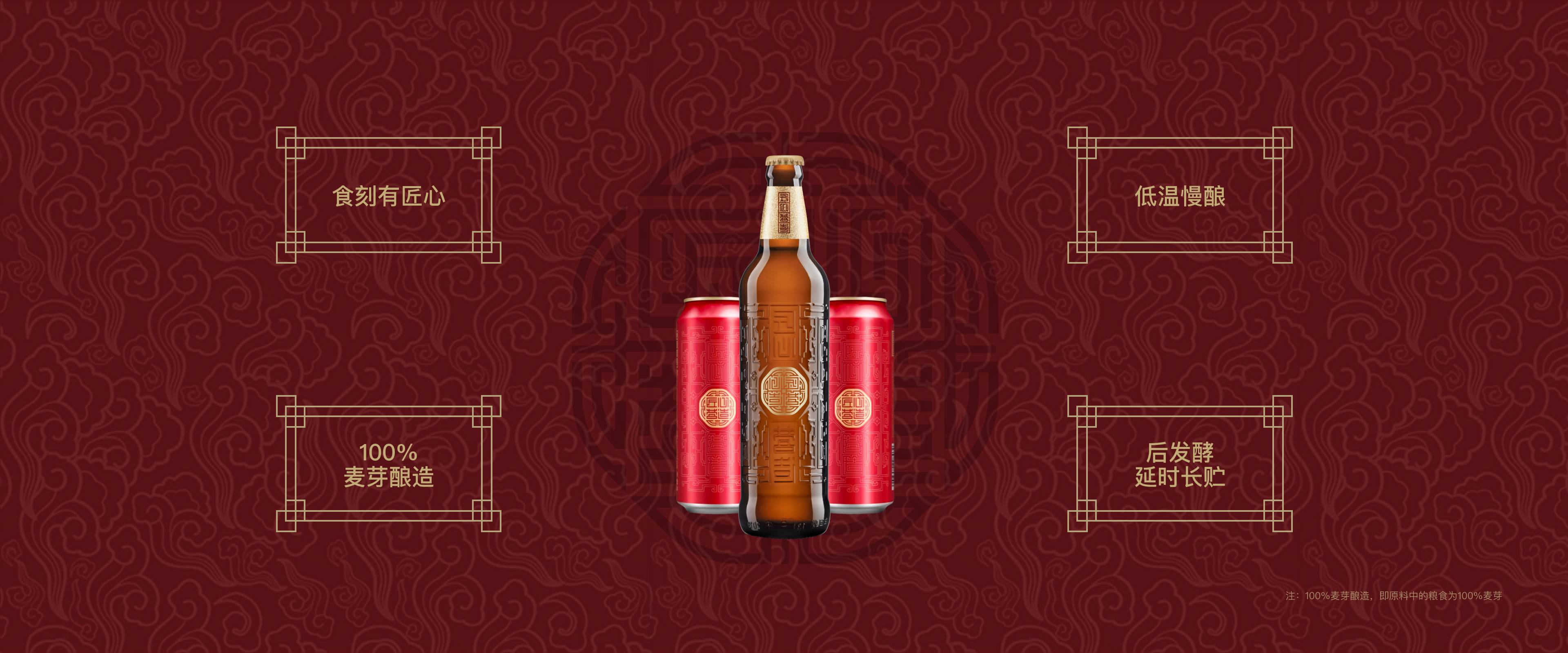 匠心营造啤酒是华润雪花啤酒于2018年推出的高端啤酒产品,是雪花啤酒“4+4”高端品牌矩阵中四大中国品牌之一,也是雪花啤酒实施品牌重塑、攻占高端啤酒市场的旗舰之作。在华润雪花打造中国啤酒品牌的思路中,匠心营造啤酒位于“顶部传承”的矩阵,被定位成“中国之味”。