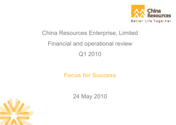 華潤創業進行重組以擴展核心消費業務 -「縱目遠瞻 跨越今天 - 中國消費品市場領導者」