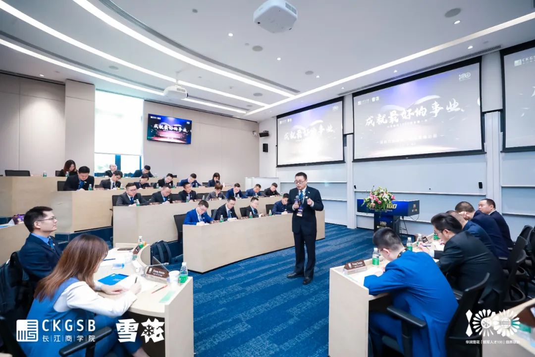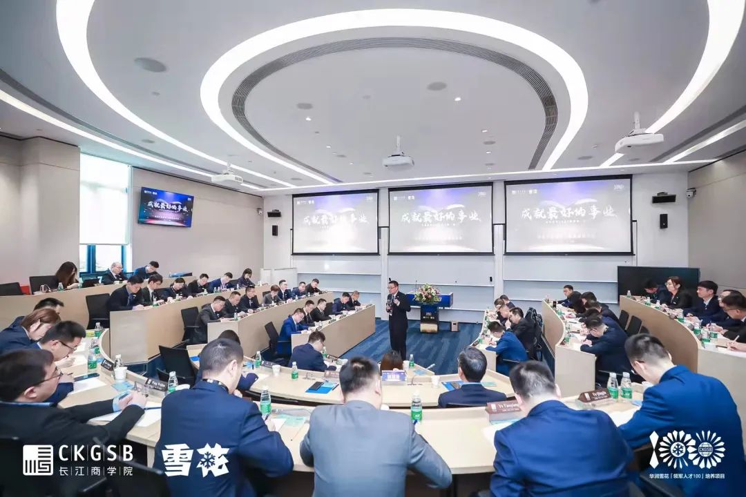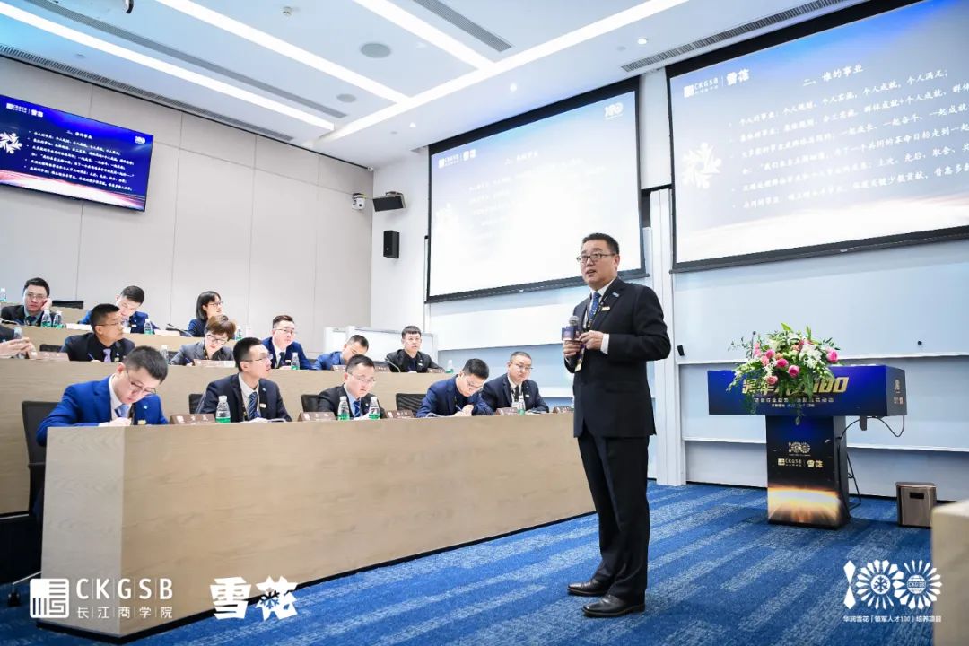 长江商学院副院长、战略学教授滕斌圣先生致辞欢迎50位新同学。“长江商学院创办至今正好20载。我们在中国企业高层管理方面做了不少探索,也沉淀了一些经验,此次与雪花战略合作,打造世界范围内的领军人才,长江重任在肩,必将全力以赴。”