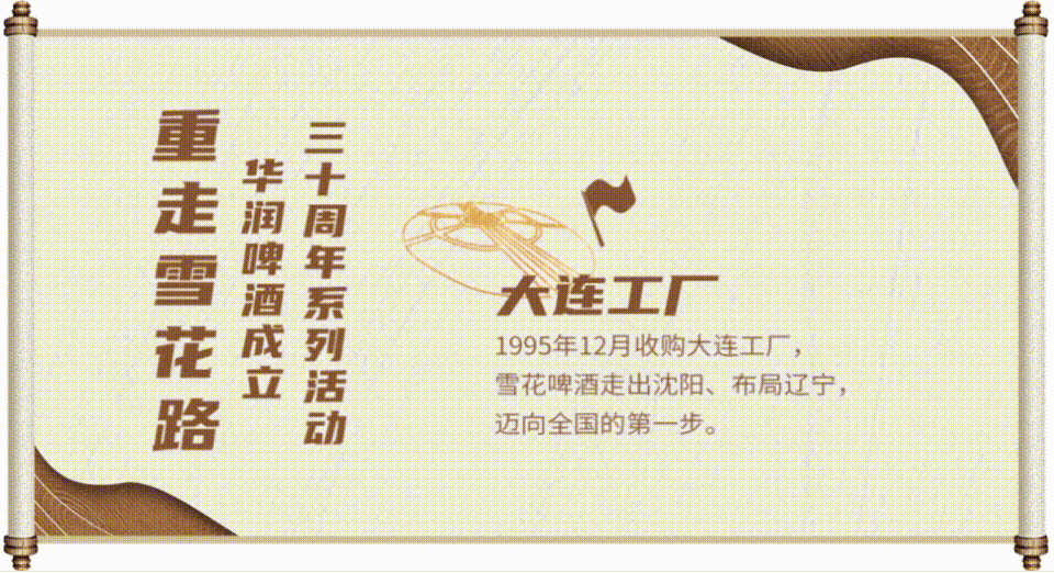 “重走雪花路”作为华润啤酒30周年系列庆祝活动的重磅环节,邀请你跟随老干部们的脚步,回到在雪花啤酒发展中具有重要里程碑意义的6个城市和工厂,回溯过往,感受传承,擘画未来。