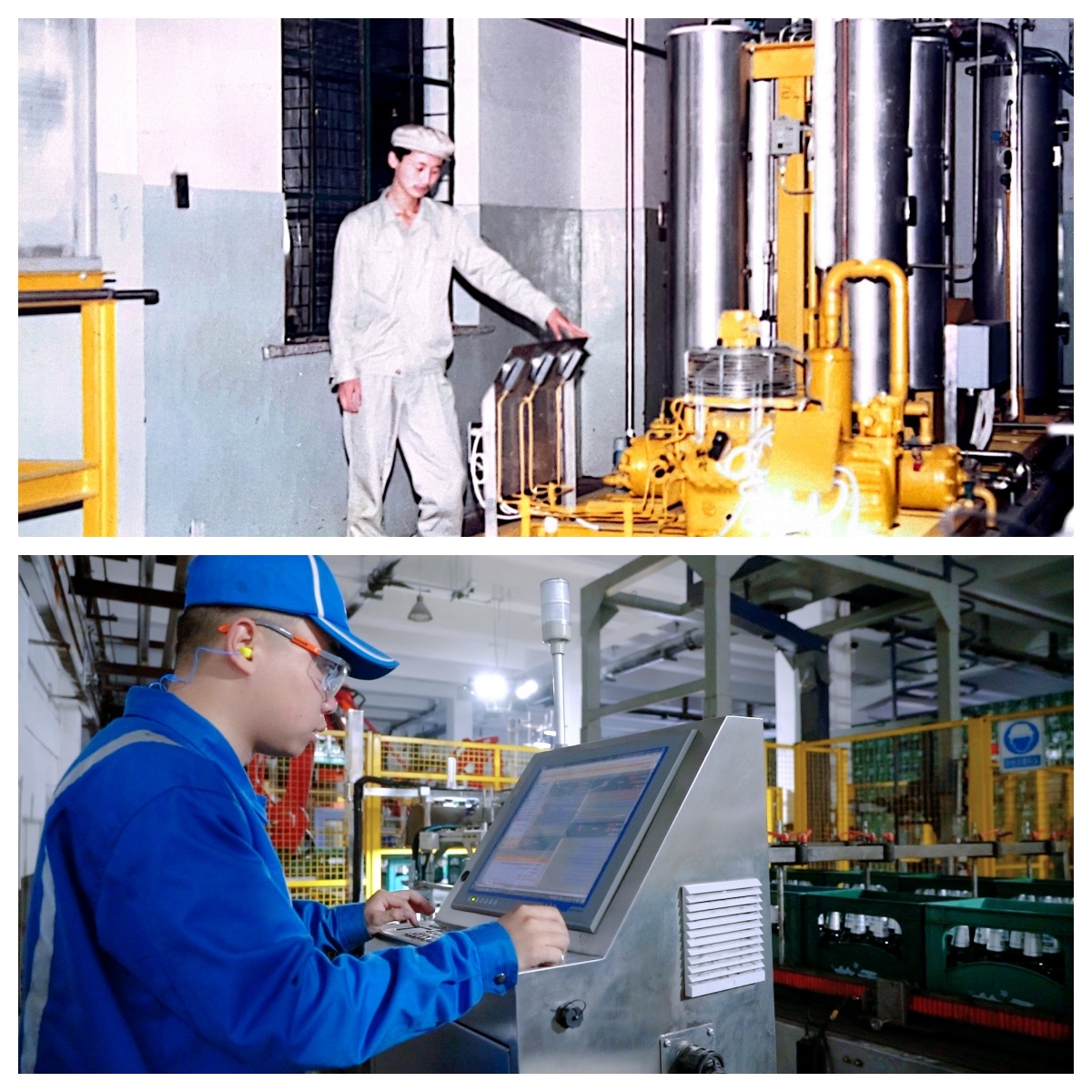 生产线从每一道工序都需要人工参与,到今天啤酒瓶盖信息采集都可以通过电脑操控的信息系统。